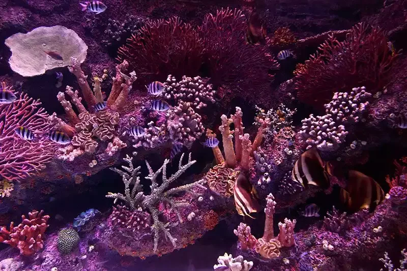 Mercanlar canlı değil, tank içindeki tüm dekorlar ve kayalar tamamen yapay. Ayrıca içeride denizanası veya ahtapot gibi çok çeşitli türler bulunmuyor.