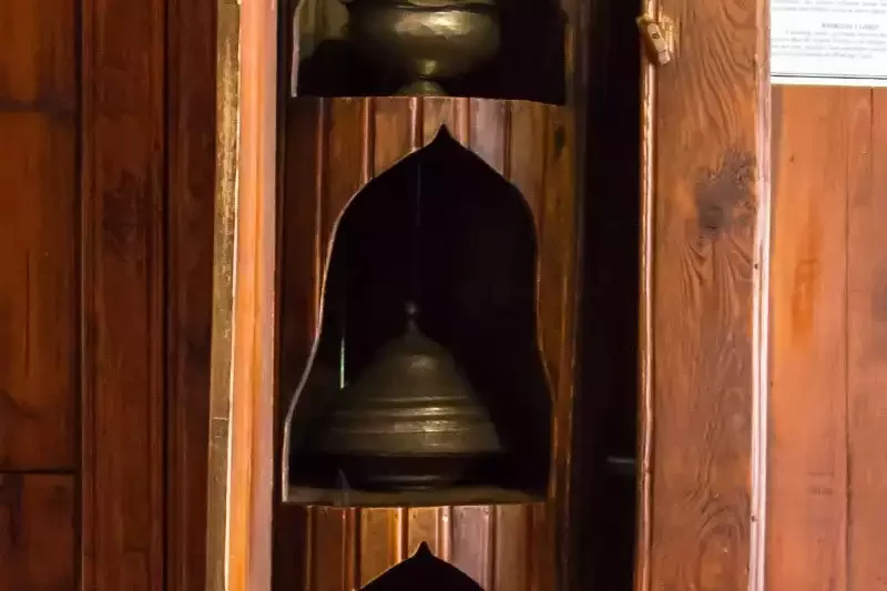 Duvarların dışındaki tüm taşıyıcı sistem ve dekorasyon unsurları sadece ahşap kullanılarak inşa edilmiş. Ustalar, bu ahşapları birbirine tuttururken demir çivi kullanmak yerine geçme tekniğini tercih etmiş. Bu akıllıca teknik sayesinde bina esneklik kazanarak yüzyıllar boyunca depremlere karşı dirençli kalmış. Ahşap tavan işlemeleri o kadar detaylı ki, insan başını yukarı kaldırdığında saatlerce oymaları incelemek istiyor.